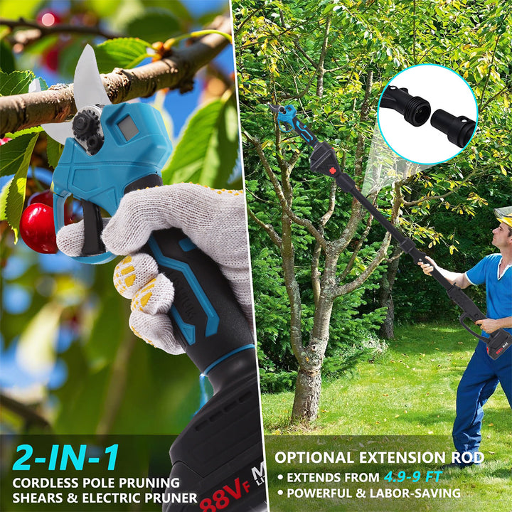2-in-1 kabellose Astschere, 30mm Schnittdurchmesser, elektrische Gartenschere mit 2,7 m Verlängerungsstange, Baumschere mit 2 Akku, LCD-Display, SK5