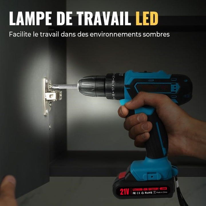 21V Akkuschrauber Set, Akku Bohrmaschine, Akku Bohrschrauber Set mit 2 Akkus und 24 Zubehöre, 25+3 Drehmoment, 2 Geschwindigkeiten, LED-Licht