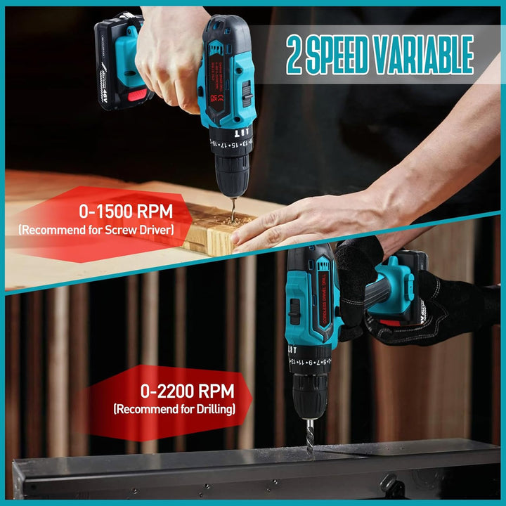 【25+3 Kupplung & 2 Geschwindigkeit】:Mit zwei Geschwindigkeitsstufen und 25 Drehmomentstufen eignet sich unsere Akku Schrauber für verschiedene Arbeitsanforderungen. Ob leichtes Anziehen von Schrauben oder Bohren von Löchern, die mehr Kraft erfordern, unsere Akku-Bohrmaschine meistert alles mit Leichtigkeit.