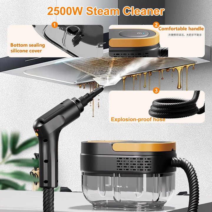 2500W Dampfreiniger mit Lenkrollen, 3-stufig verstellbarer, 10S Aufheizzeit, 4 bar Dampfdruck 1.6L Tank, tragbarer dampfreiniger handdampfreiniger