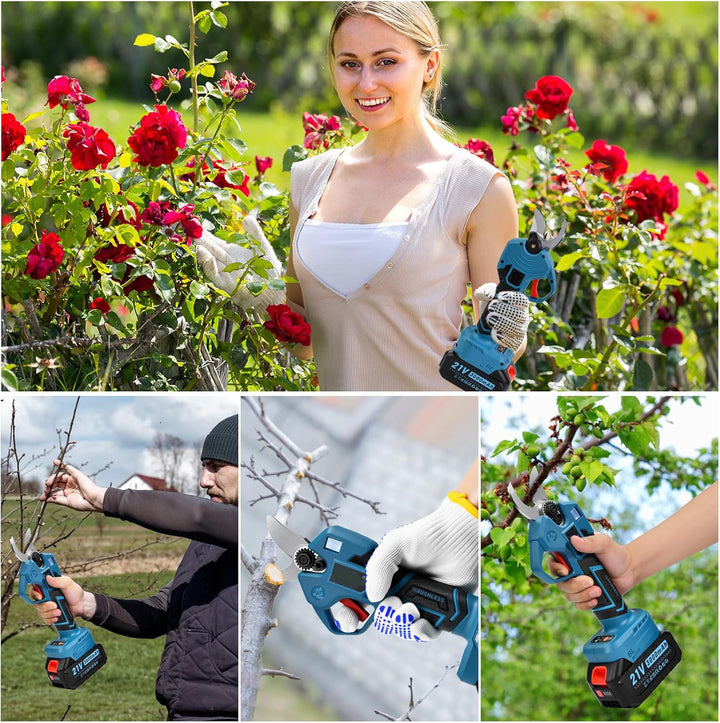 【Leistungsstark & zeitsparend】Mit dem 500W bürstenlosen Motor und hochwertigen SK5-Stahlklingen schneiden Sie mühelos Äste bis 30 mm Durchmesser. Bis zu 6-8 mal schneller als manuelle Gartenscheren - spart Zeit und Kraft. Perfekt für professionelle Gärtner und Senioren, die komfortabel arbeiten möchten. Die kraftvolle Schneidleistung macht anstrengende Gartenarbeit zum Kinderspiel.