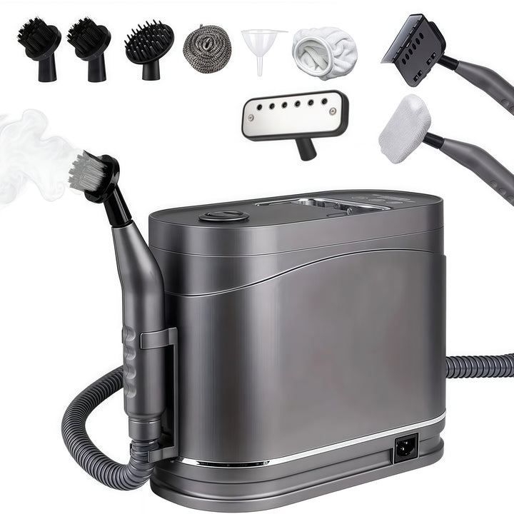 【Multifunktionaler Dampfreiniger】 Der tragbare Dampfreiniger kann alle Ihre täglichen Reinigungs- und Desinfektionsbedürfnisse des Hauses erfüllen. Geeignet für Zuhause, Küche, Wohnzimmer, Haustiertoilette, Büro, Polstermöbel, Fugen, Möbel, Sofas, Kinderspielzeug, Grillen, Kleidung, Spiegel, Keramik, Vinyl, Laminat, Granit, Marmor, Leinen.