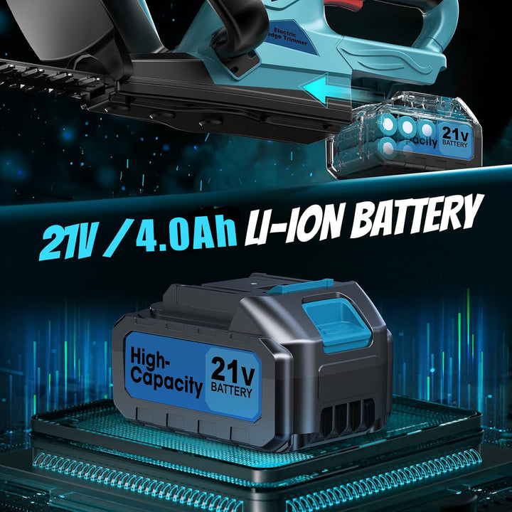 500W Akku Heckenschere mit Bürstenlosem Motor – 530 mm Schnittlänge, 4000mAh Akku & Ladegerät – für Hecken & Sträucher, 20 mm Schnittstärke, Blau