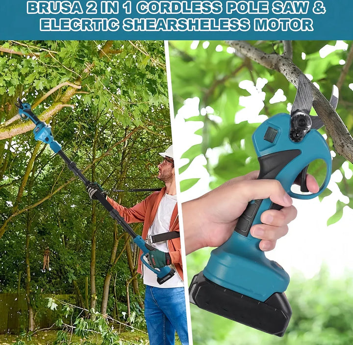 Akku Astschere Elektrische Gartenschere, Gartenschere mit Pol,2-in-1 Electric-Lpper Teleskop,0-30mm Schnittdurchmesser,mit 2 Batterie,Digitalanzeige