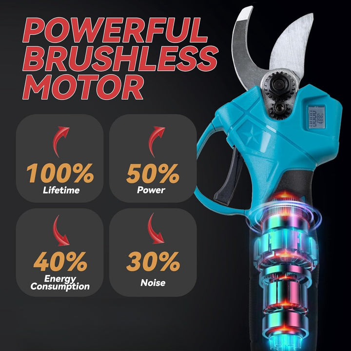 ⚙【Intuitive Digitalanzeige, komfortable Steuerung】Das digitale Display an der Schere ist ein Highlight. Die Batterieleistung wird deutlich angezeigt, sodass Sie vor der Arbeit genau wissen, ob die Batterie ausreicht. So können Sie Ihre Schnittarbeiten entsprechend planen und müssen sich keine Sorgen mehr machen, dass die Hälfte der Batterie während des Beschneidens leer wird.