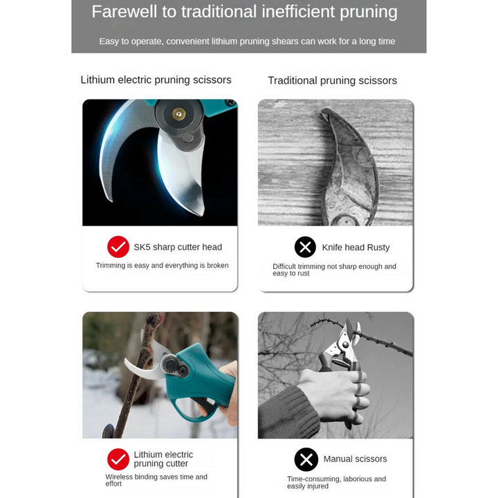 ⚙【Leistungsstarke Leistung, einfaches Beschneiden】Das Herzstück dieser Schere ist ihr bürstenloser 21-V-Motor, der leistungsstarke Leistung erzeugt, um Äste unterschiedlicher Dicke, von schlanken Zweigen bis hin zu dicken Ästen mit einem Durchmesser von bis zu 1,2 Zoll, problemlos zu schneiden und in einem zu schneiden Ganz gleich, ob es sich um das Beschneiden von Obstbäumen, Zierbäumen oder Gartensträuchern handelt, es kann die Aufgabe gut erledigen.