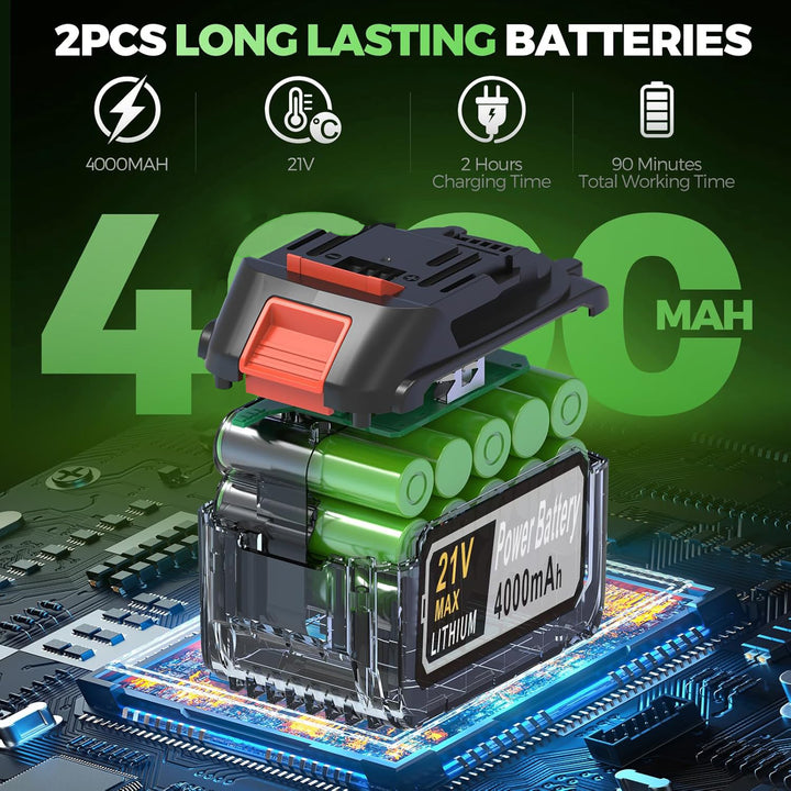 Im Lieferumfang enthalten sind zwei leistungsstarke 4,0 Ah Lithium-Akkus, die wechselweise verwendet werden können. Ohne Ladeunterbrechung meistern Sie auch größere Gartenprojekte flexibel und effizient.