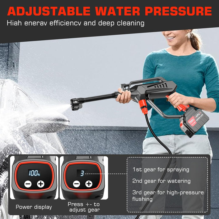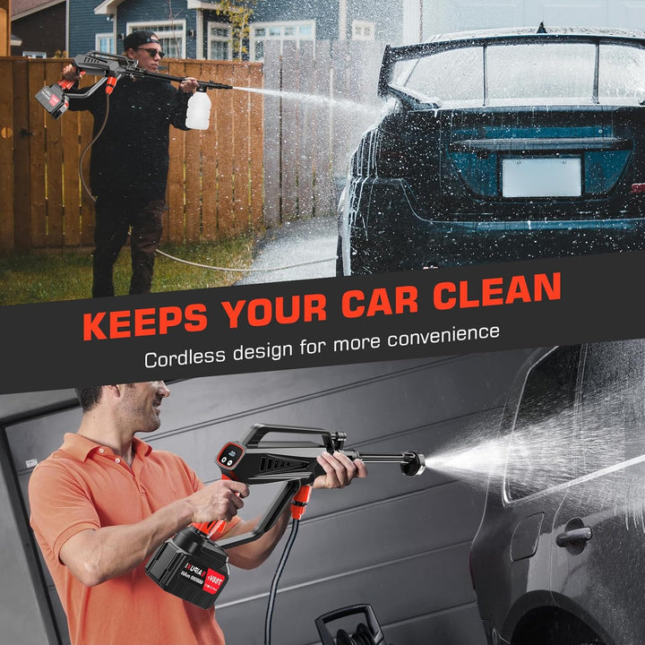 【Vielseitig einsetzbar】Dieser batteriebetriebene Hochdruckreiniger kann nicht nur Fahrzeuge reinigen, sondern auch eine Vielzahl von Reinigungsanforderungen erfüllen, wie Hofwäsche, Pflanzen gießen, Haustiere baden, Gemüsegärten gießen, Fenster und Wände reinigen und mehr. Dieser Hochdruckreiniger ist ein ideales Reinigungswerkzeug für eine Vielzahl von Szenarien.