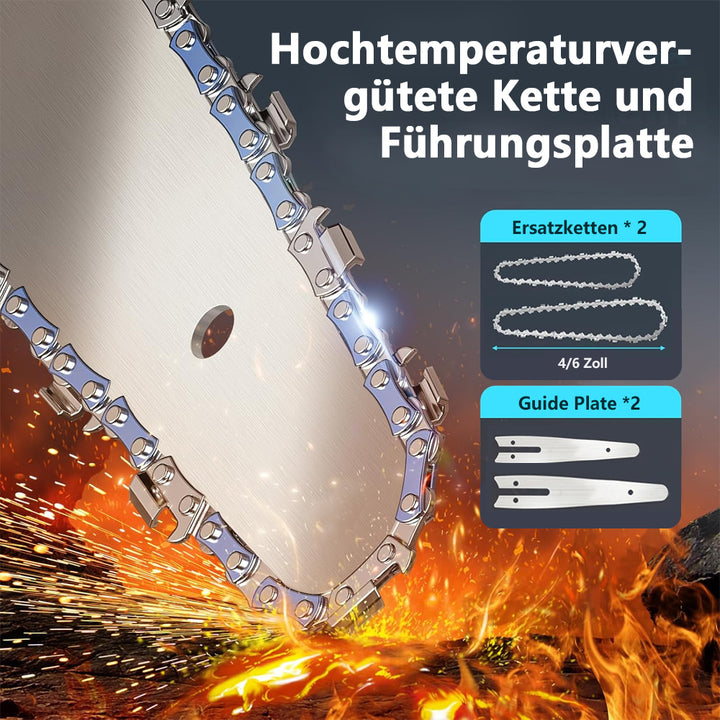 Akku-Kettensäge 4/6 Zoll Kettensäge Elektrisch mit Akku Einhand Motorsäge Handkettensäge,mit 2Batterien 2Kette und Ladegerät für Garten,Astscheren