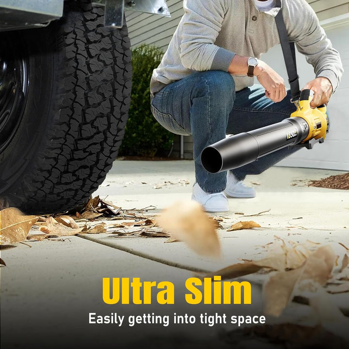 【LEICHTES DESIGN & EINFACH ZU TRAGEN】Mit nur 2,0 kg unterstützt dieser Laubbläser eine ermüdungsfreie Bedienung mit einem rutschfesten ergonomischen Griff für zusätzlichen Komfort. Außerdem ist es mit einem Schultergurt befestigt, um die Belastung Ihrer Hände zu erleichtern. Das abnehmbare Design macht die Lagerung einfacher und bequem im Freien zu tragen.