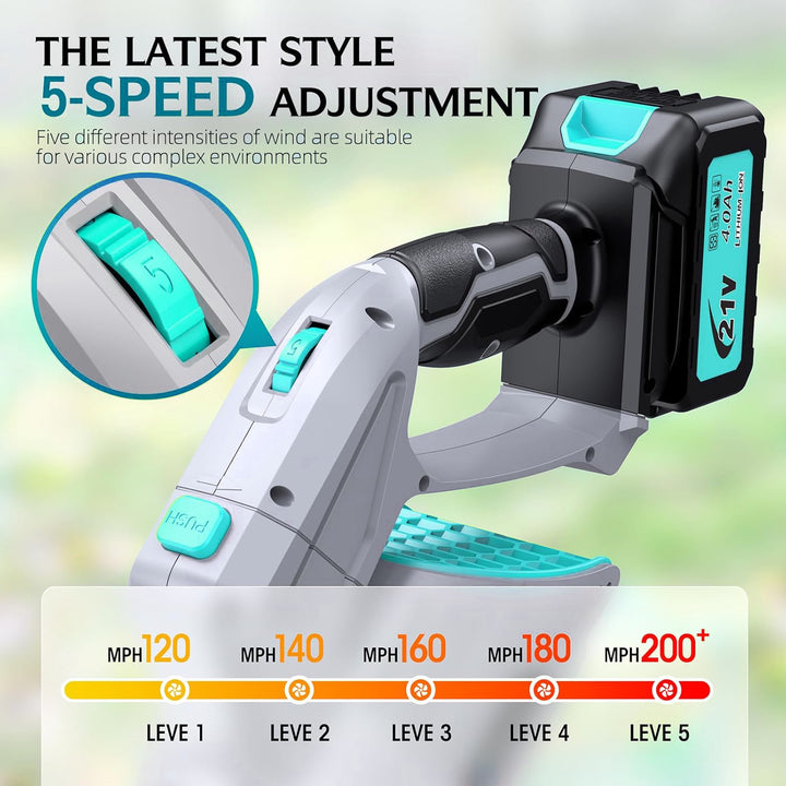 Leistungsstarker Akku-Laubbläser: 144 km/h Windgeschwindigkeit, 330 CFM, 5 Stufen, 2 Arbeitsmodi, 60 Min. Laufzeit