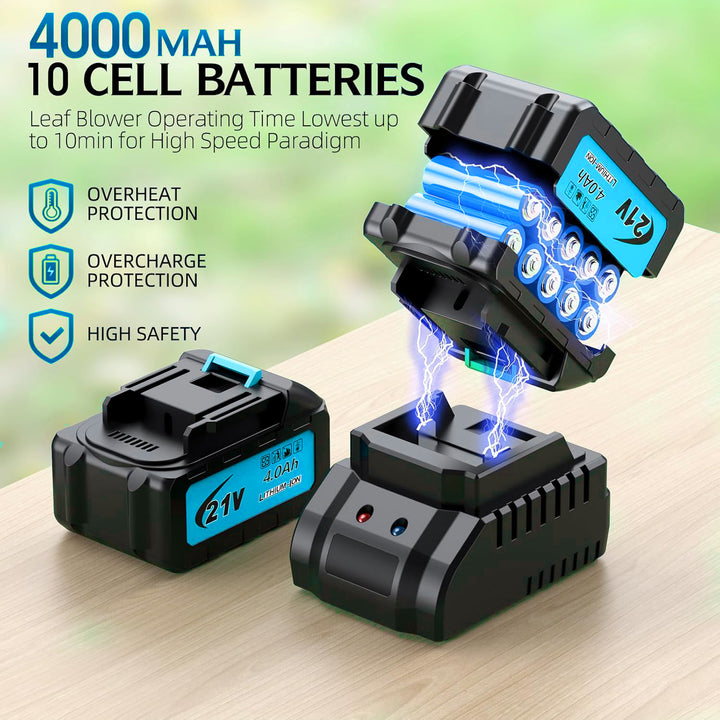 Akku Laubbläser, Gebläse, 5 Stufen Laubsauger, Bläser Sauger mit 2 x 4000mAh Akkus und Ladegerät für Blasen Sauge Voor Weggarage Veranda Patio
