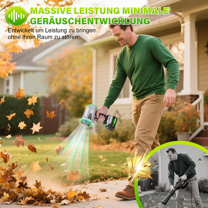 Ausgestattet mit einem bürstenlosen Hochleistungsmotor und Turbostrahl-Technologie erzeugt der Akku Laubbläser eine Windgeschwindigkeit von bis zu 65m/s und ein Luftvolumen von 400CFM – ideal zum Entfernen von nassem Laub, Schnee und hartnäckigem Schmutz.