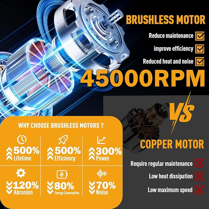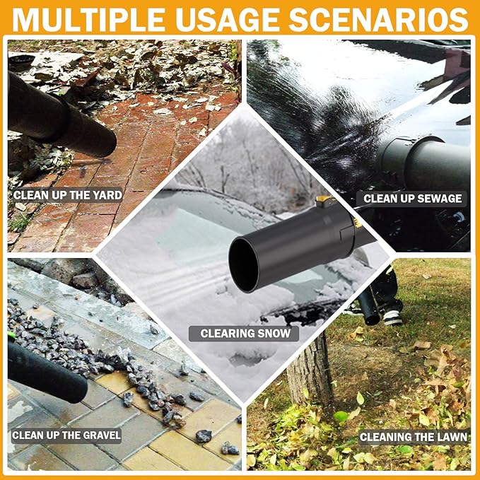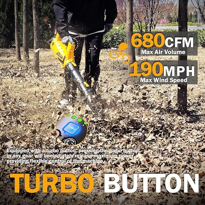 ️【Starker 4220-Bürstenloser Motor mit Turbomodus】Ausgestattet mit einem hochwertigen 4220-BLDC-Motor erreicht dieses Akku-Gebläse eine variable Drehzahl von 0–23.000 U/min. Die Luftmenge von bis zu 10 m³/min sorgt für kraftvolles Ausblasen von Blättern, Staub, Schmutz oder Wasser – ideal für Hof, Garten oder Auto.