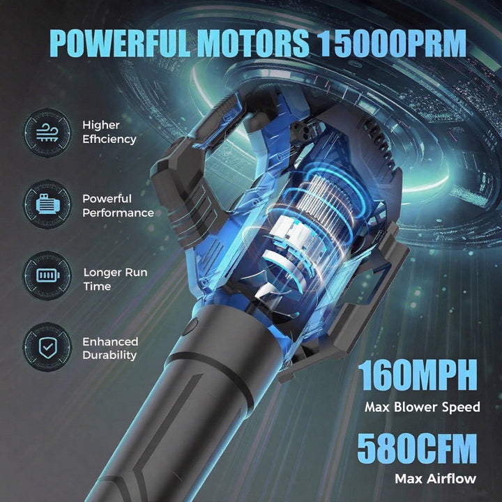 Akku Laubbläser150000RPM &3 Geschwindigkeitsstufen Elektrischer Laubgebläse mit 2 x 4,0 Ah Akku und Ladegerät,für Rasenpflege, Hof, Garage, Blätter