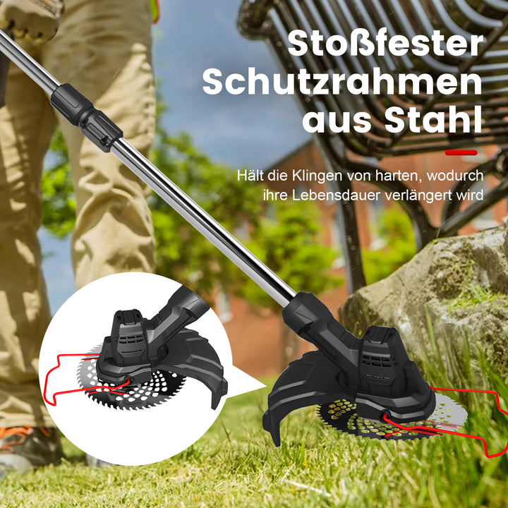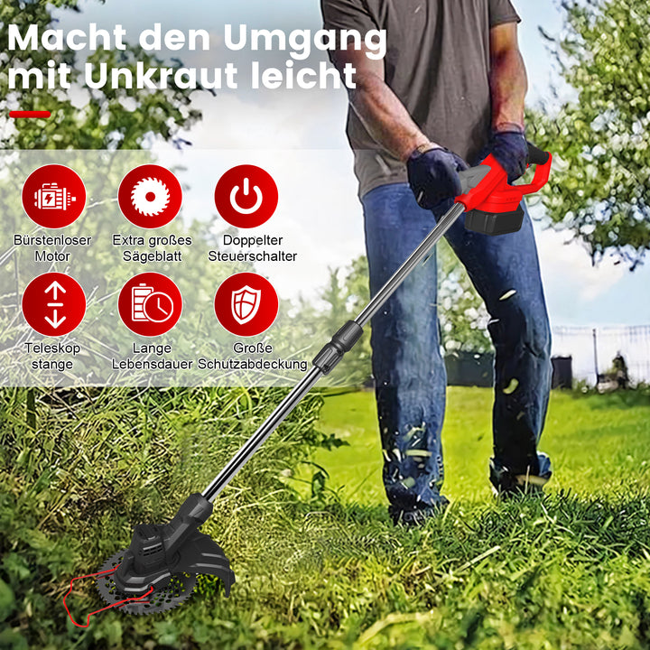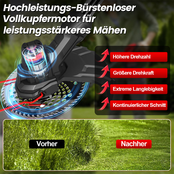 Akku Rasentrimmer mit 2× 4000mAh Akku 21V, Bürstenloser Motor Rasentrimmer, 17cm Schnittdurchmesser, Freischneider mit Akkus & Ladegerät