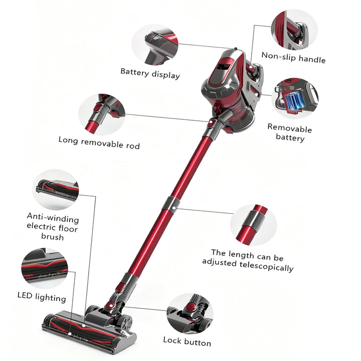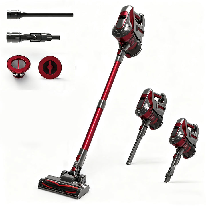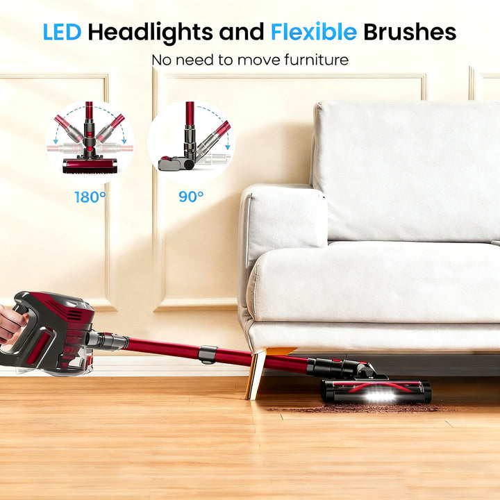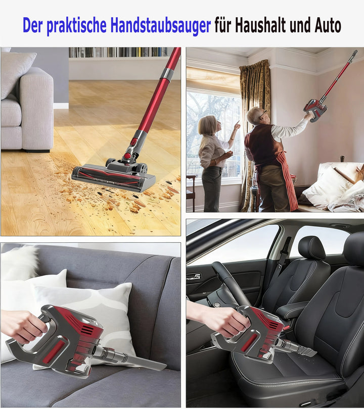 Der kabellose Staubsauger ist mit einem leistungsstarken Motor ausgestattet, die stärkste Saugleistung beträgt bis zu 37 kPa im Max-Modus, der große und feine Partikel, Tierhaare und Schmutz auf Teppichen, Hartholzböden, Fliesen leicht erfassen und Reinigungsprobleme effizient lösen kann.