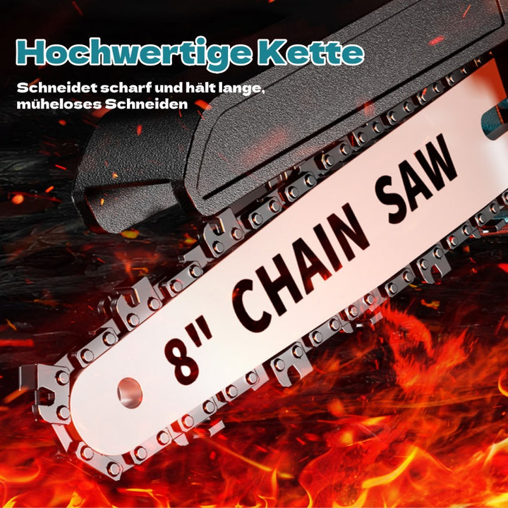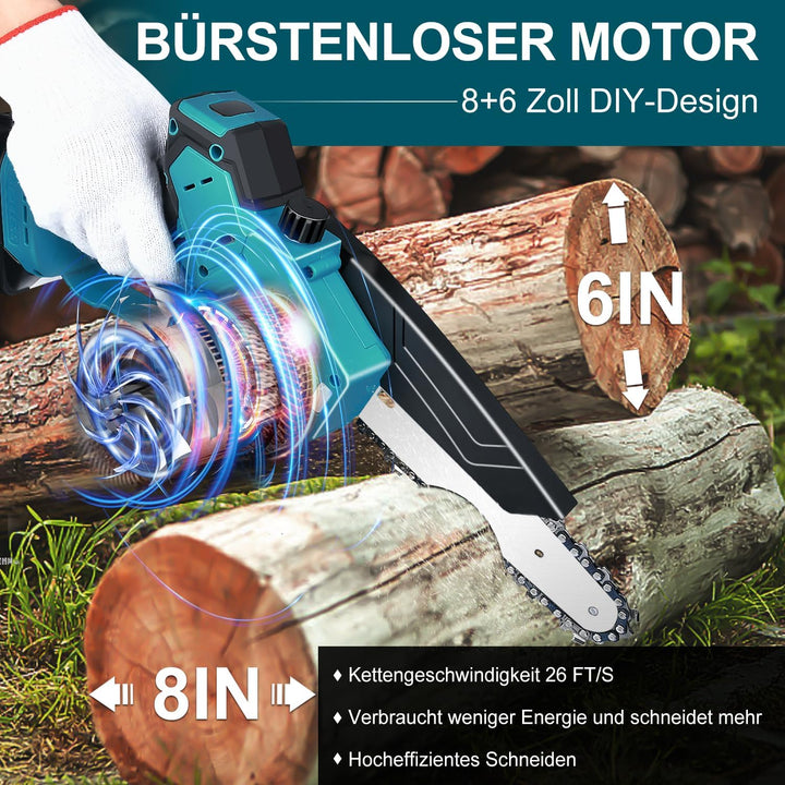 [Leichte und effiziente Kettensäge] - Mit einer 8-Zoll-Führung für einen größeren Schnittradius, während die bürstenlose Mini-Kettensäge nur 1,5 kg wiegt. Die 8-Zoll-Kettensäge ist vielseitig einsetzbar und eignet sich für zahlreiche Projekte rund ums Haus. Die Kettenspannung kann zudem bequem durch Drehen des Knopfes eingestellt werden