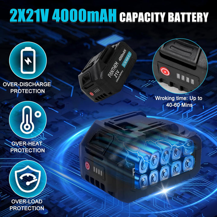 [Große Akkukapazität und visuelle Batteriestandsanzeige] - Mit zwei 4,0-Ah-Akkus ist diese Mini-Kettensäge bestens für kleine bis mittlere Schneidarbeiten sowie das Sägen von Ästen und Brennholz geeignet. Die Ladezeit beträgt nur 2–3 Stunden und ermöglicht eine durchgehende Laufzeit von 50–60 Minuten. Dank der digitalen Batteriestandsanzeige können Sie den Ladestand jederzeit in Echtzeit überwachen