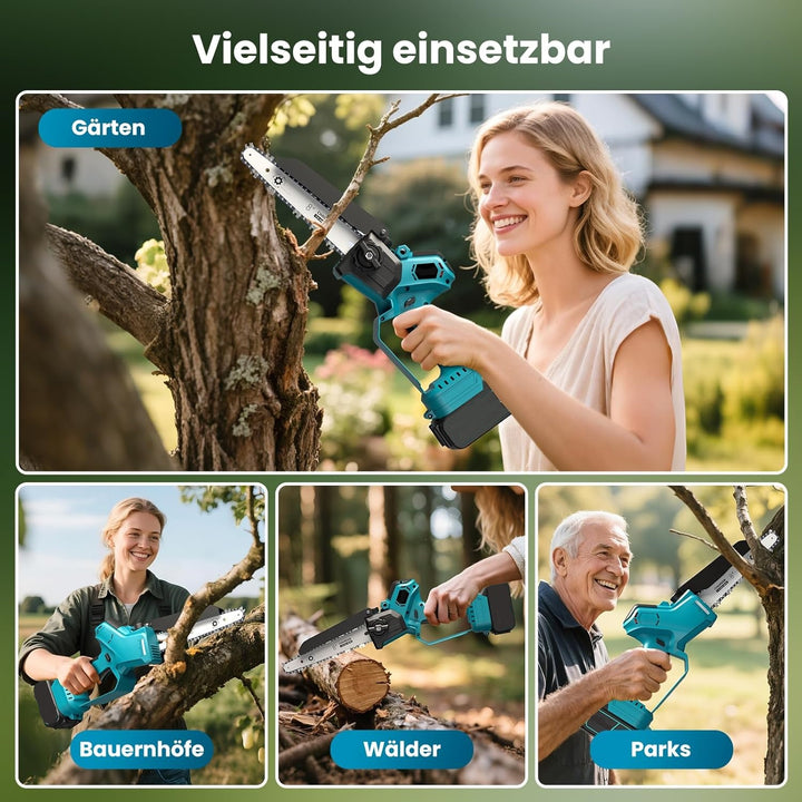 Erweiterte Forstlösungen :Wir haben exklusive kompatible Batterien, die separat gekauft werden können. Diese Batterien sind perfekt für unsere Handkettensäge und verlängern ihre Akkulaufzeit. Wenn die von Ihnen gekauften Kettensägenbatterien nicht ausreichen, können Sie direkt in unser Geschäft gehen, um Batterien zu kaufen oder uns über Kaufland zu fragen.