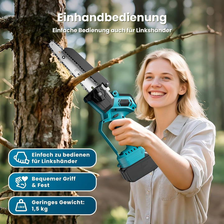 [Mini Kettensäge] - Diese Akku-Kettensäge verfügt über einen 1000-Watt-Brushless-Motor. Der bürstenlose Motor sorgt für höchste Leistung, eine längere Laufzeit und maximale Lebensdauer. Anders als Kohlebürstenmotoren unterliegt er keinem Verschleiß und ist dadurch wartungsfrei. Zudem entsteht beim Schneiden kein Brandgeruch, sodass Sie sich keine Sorgen über Feuer machen müssen