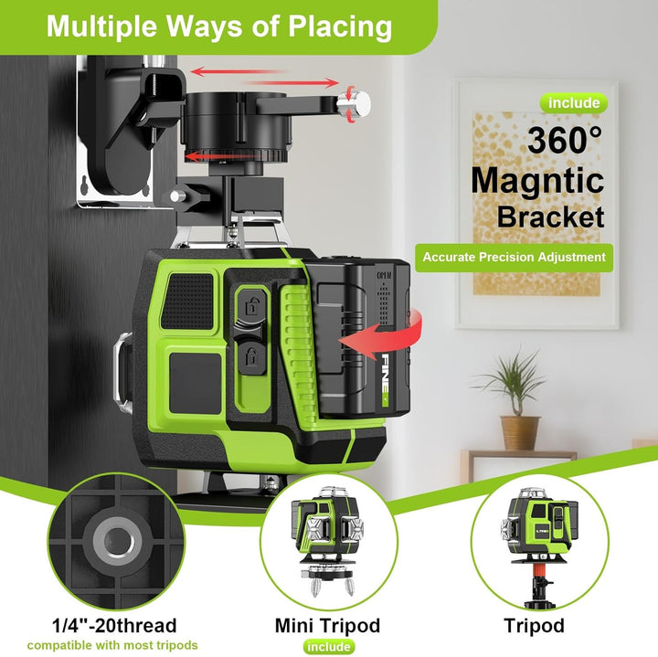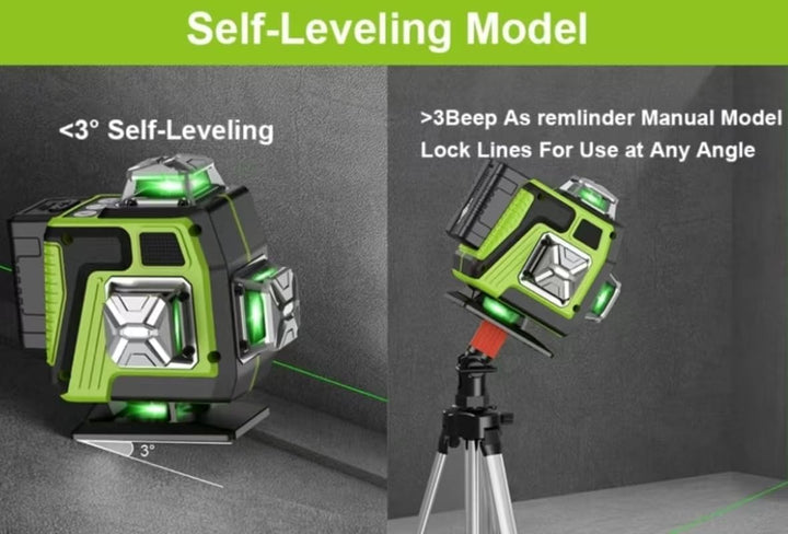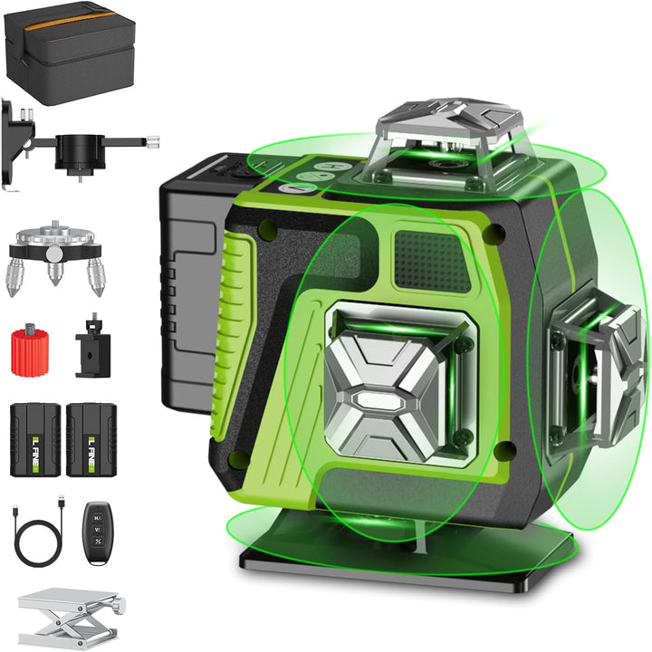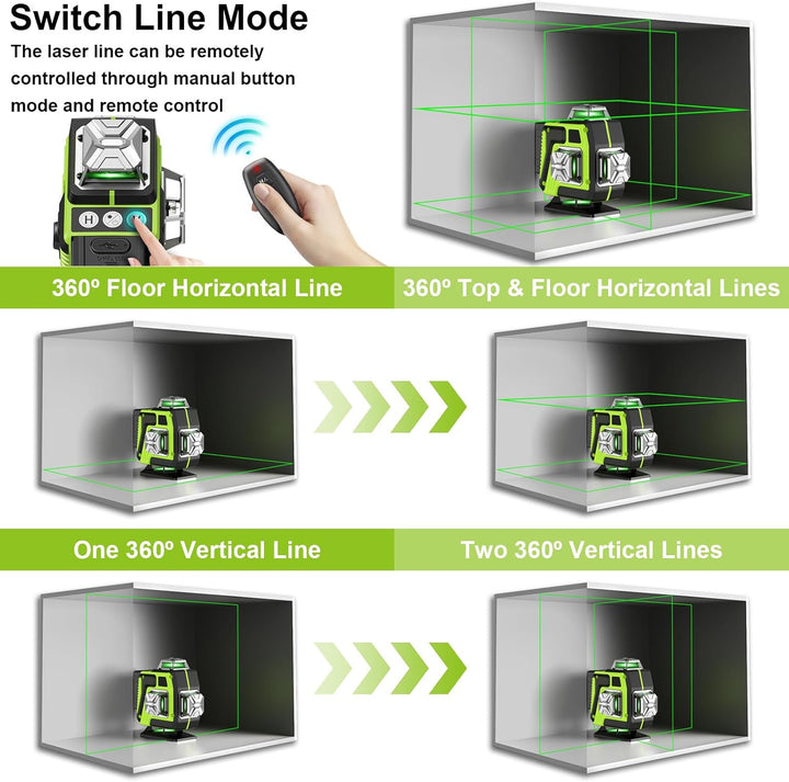 Kreuzlinienlaser profi 4D Laser Level 16 Lines, Grünes 360º Rotationslaser, Selbstnivellierend, Neigungsmodus & zwei Batterien, für Bau & Heimwerken
