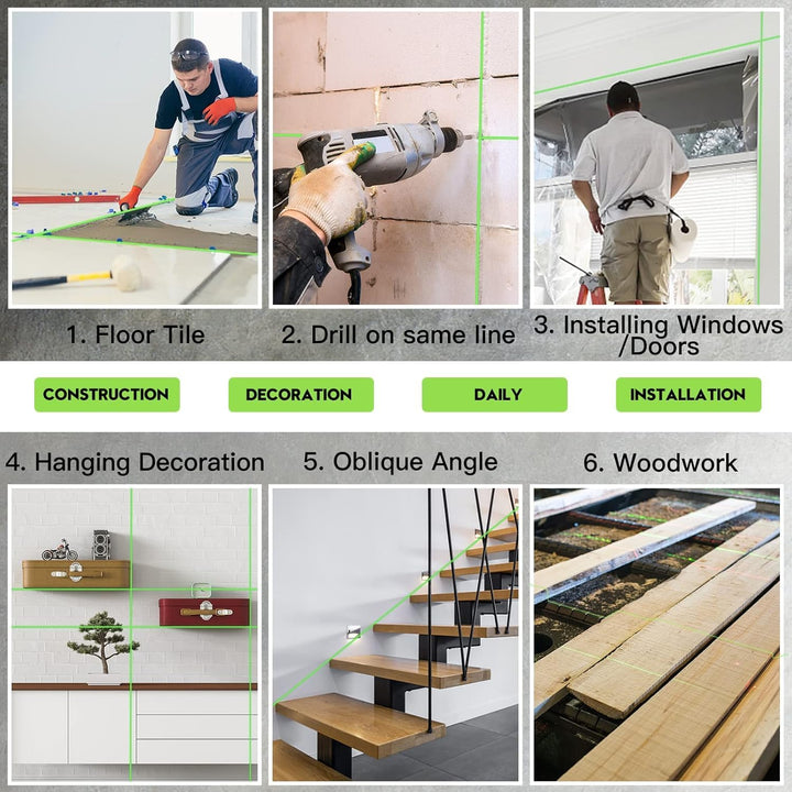 Die verbaute grüne Lasereinheit bietet eine deutlich höhere Sichtbarkeit und Stabilität als herkömmliche rote Laser. Mit einer Wellenlänge von 505–520 nm und Laserklasse <1mW ist sie optimal für helle Innenräume und kurze Außeneinsätze geeignet. Entspricht Klasse II, Reichweite bis 10 m, Genauigkeit ±1/9 Zoll auf 10 m.
