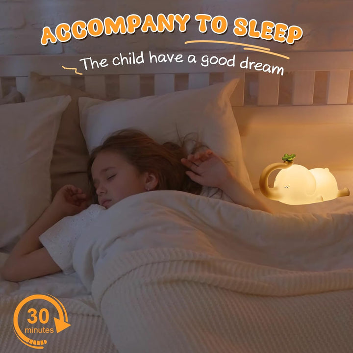 Nachtlicht Kinder,Elefant Nachtlicht Baby Stilllicht Dimmbar,Silikon Touch Nachttischlampe Kinder Mit Timer,USB Aufladbare,Baby Geschenk Junge Mädchen