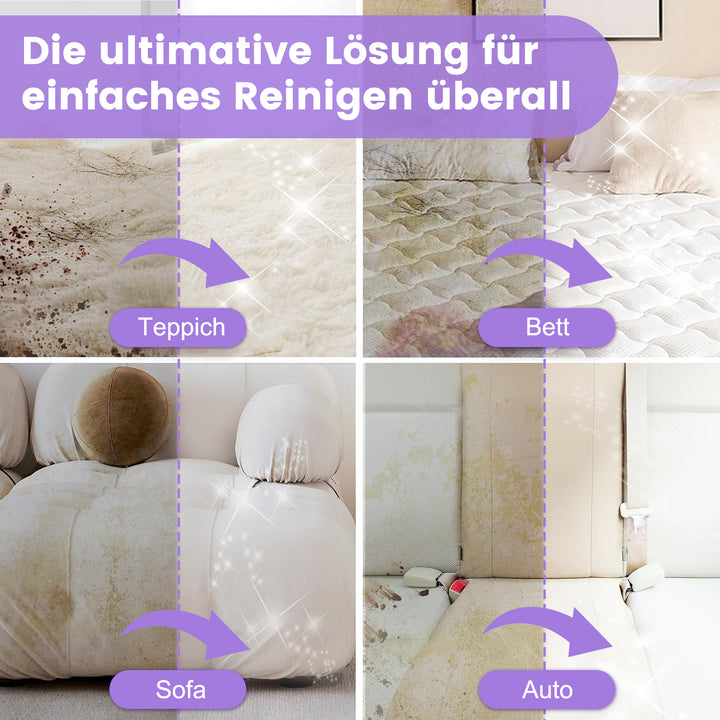 Tiefenreinigung für Teppiche, Sofas & MatratzenMit einem Vakuumdruck von über 10.000Pa entfernt das Gerät problemlos Tierhaare, Flecken und Flüssigkeiten. Die große (177mm) und kleine (76mm) Bürste lassen sich flexibel je nach Einsatz wechseln – ein echtes nasssauger polsterreiniger Kraftpaket.