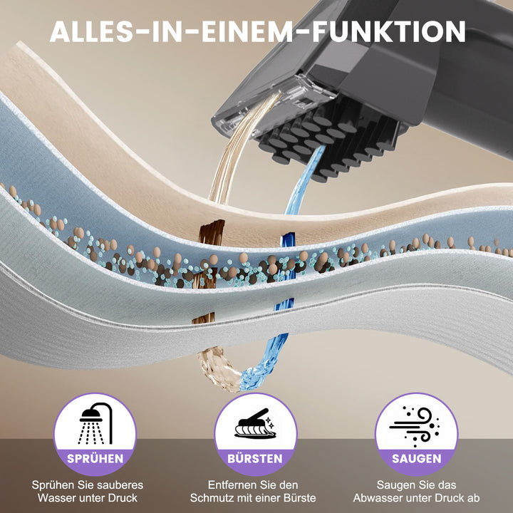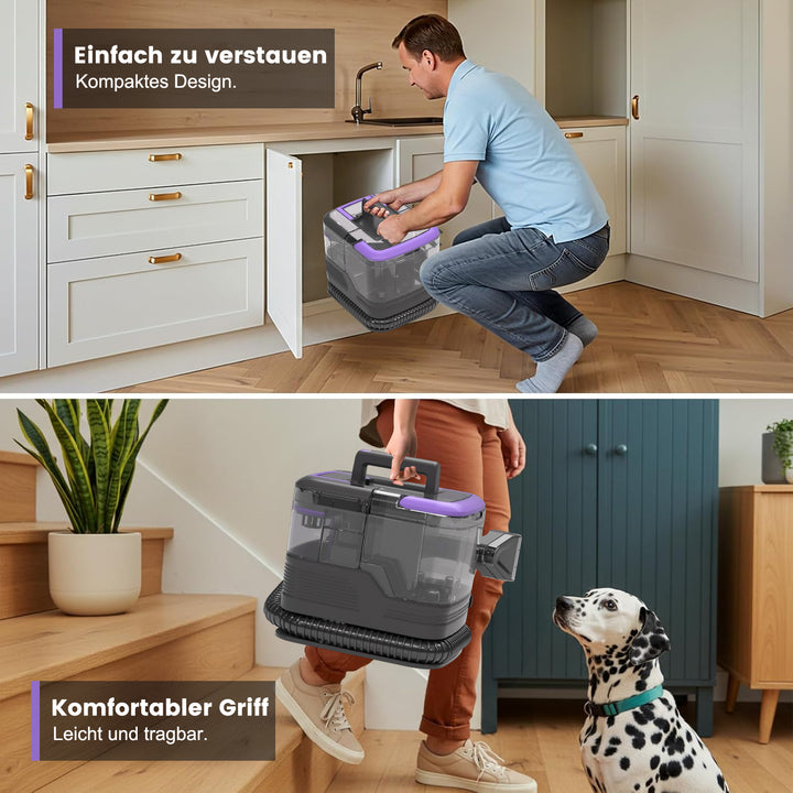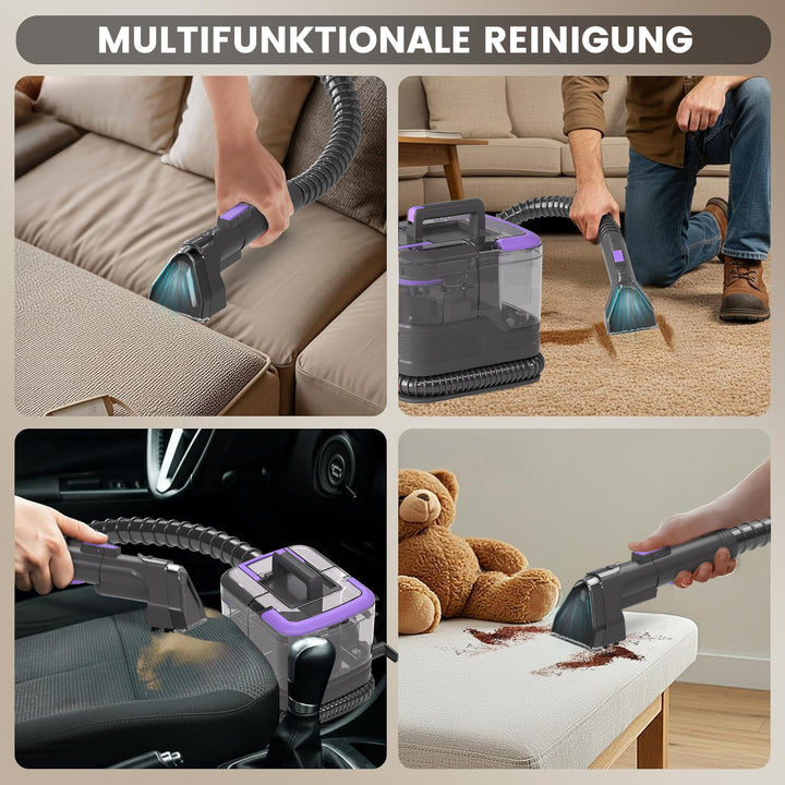 Deutsche Qualität bis ins DetailMit einem Betriebsgeräusch von nur ≤82dB bleibt es auch nachts angenehm leise. Der 450W-Motor spart Strom und liefert dennoch starke Leistung. Eine mitgelieferte Reinigungsbürste erleichtert die Pflege – ideal für couch reiniger, wasserstaubsauger oder teppich reinigungsgerät Anwendungen.
