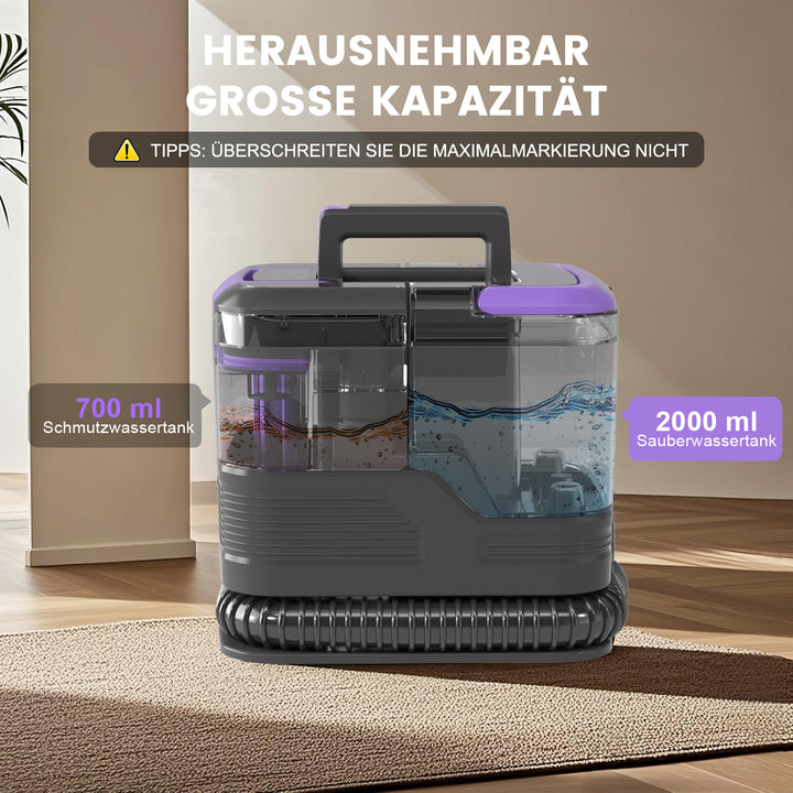 Polsterreiniger & Waschsauger mit Reinigungsmittel & Selbstreinigung, 450W Nass-/Trockensauger – 2L Tank, 10Kpa Saugleistung, Teppichreiniger für Sofa